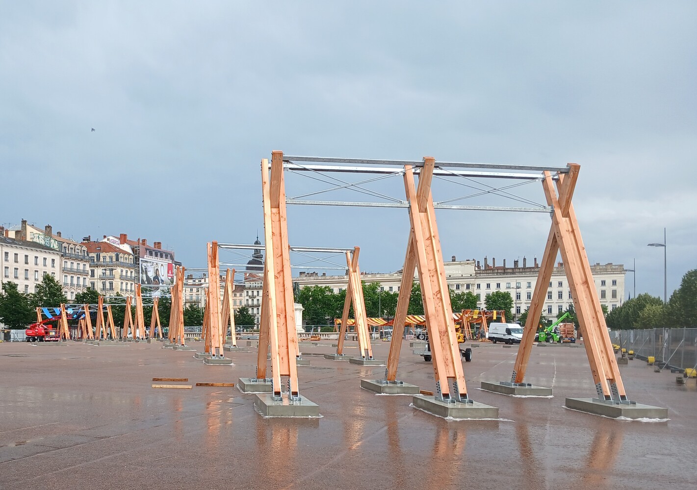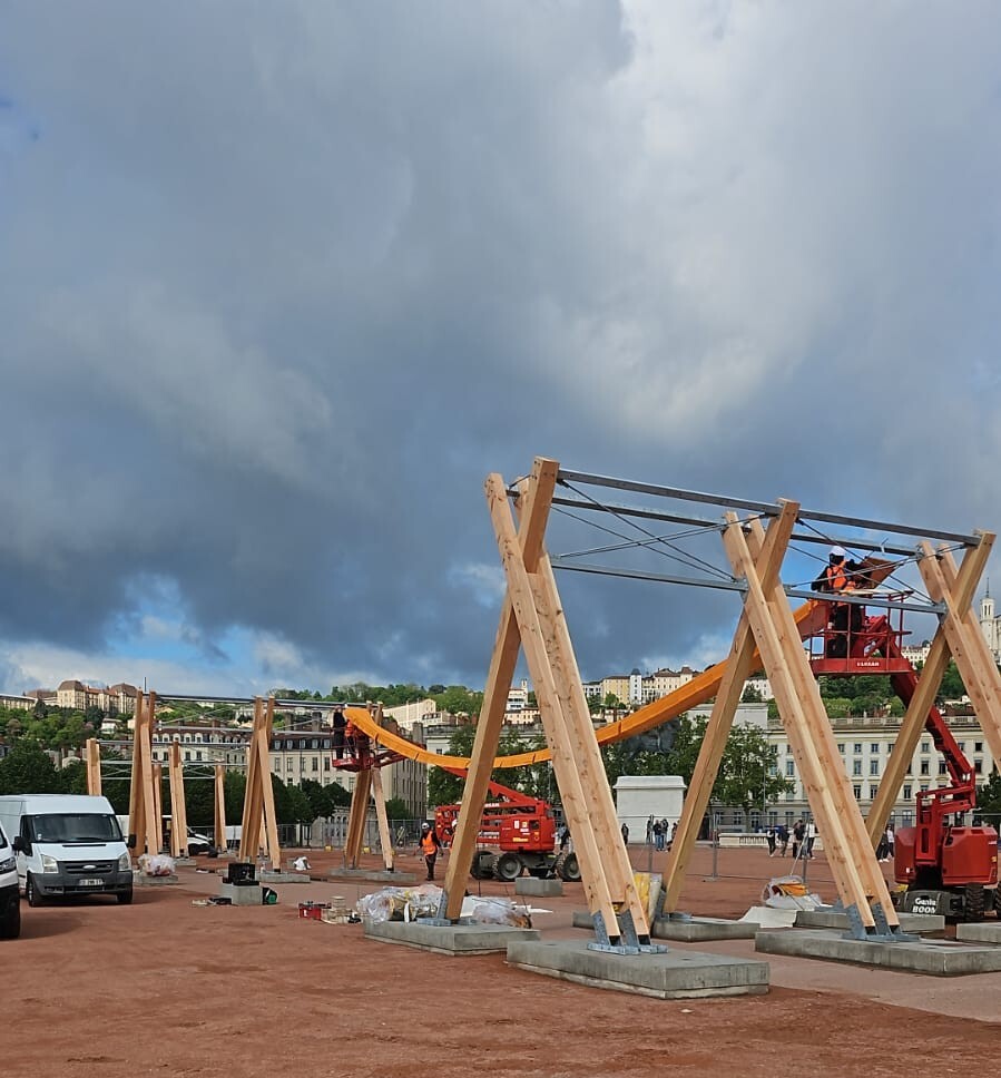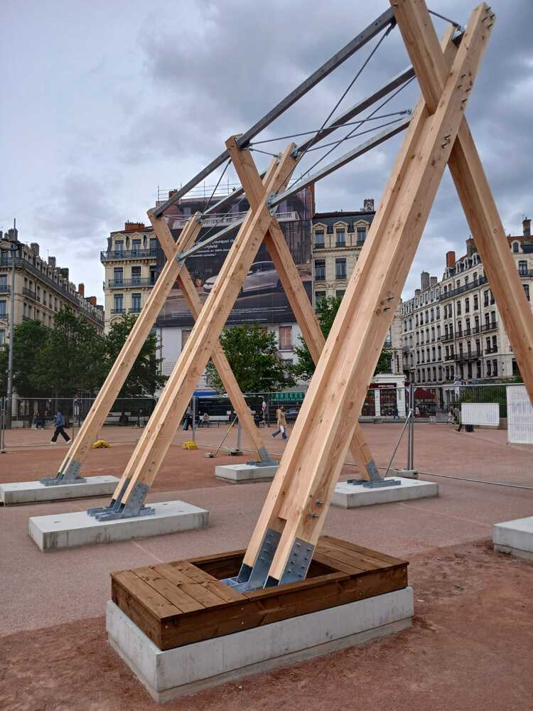 5 structures en bois de 7 m de haut et 6,5 m de large