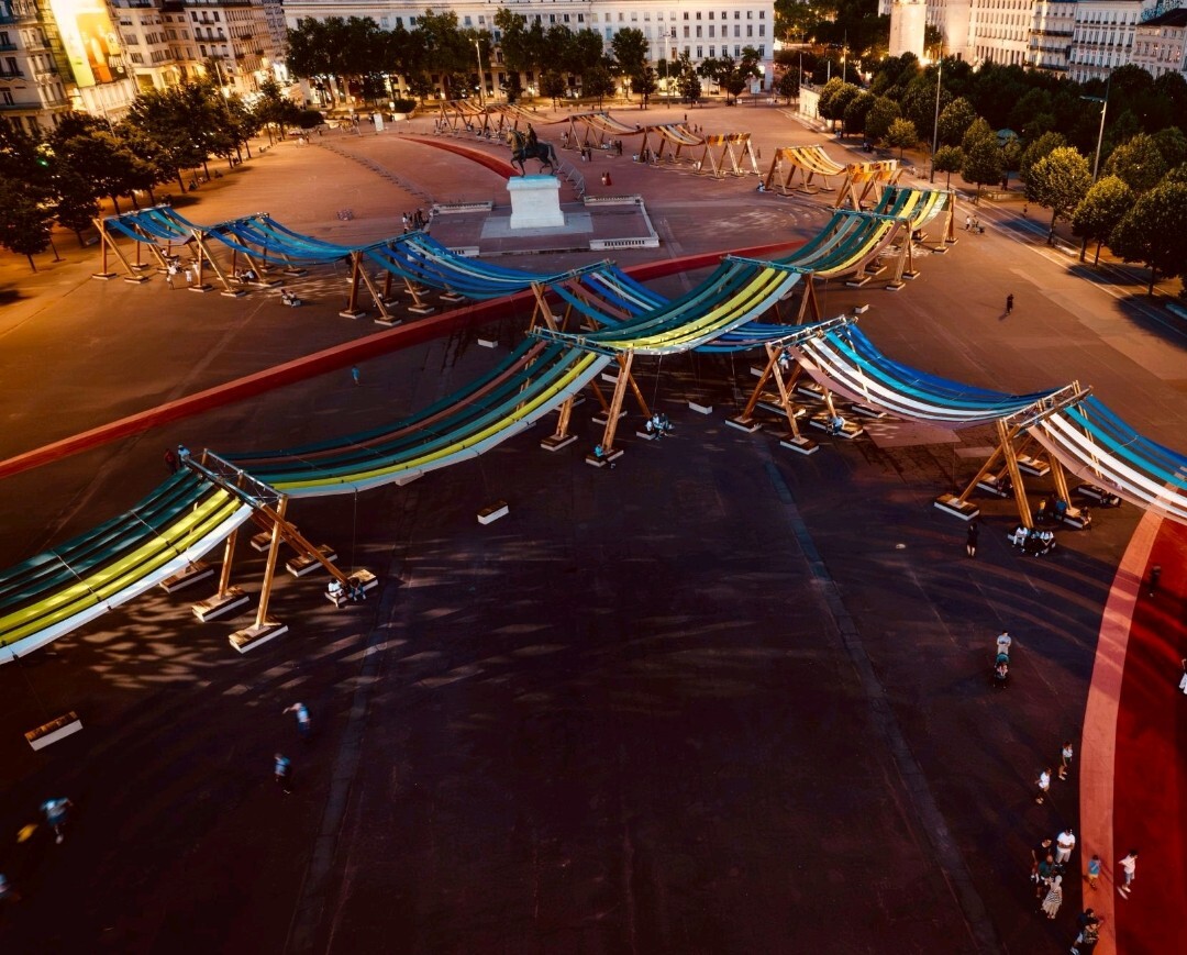 Oeuvre éphémère "Tissage urbain" - Place Bellecour - Lyon (69)